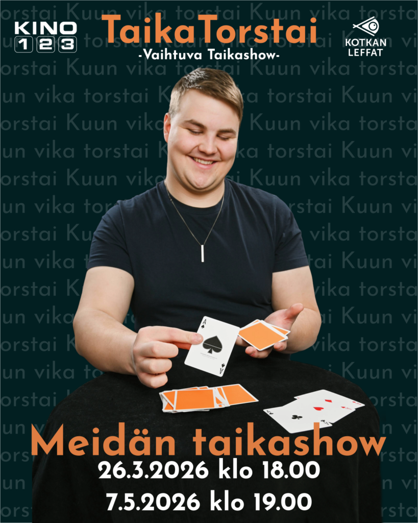 Vuoden 2026 aikana Kotkan leffojen sekä Kino 123:n tiloissa järjestetään usea erilainen taikashow.